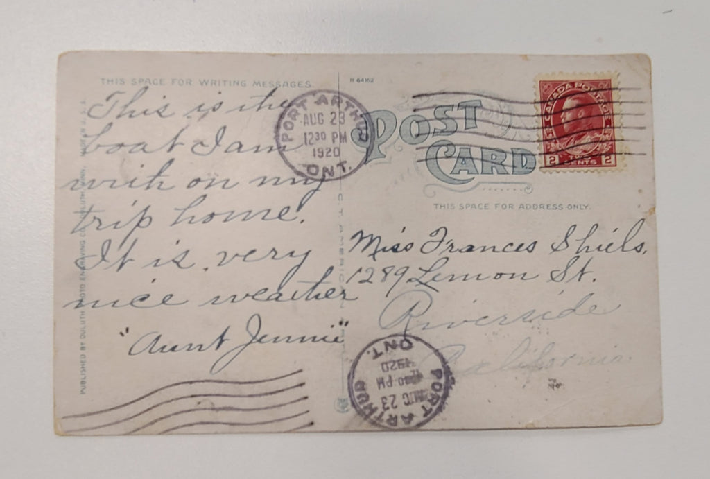 An original postcard depicting the Steamer Noronic of the Canadian Steamship Lines. Dated August 23rd, 1920.