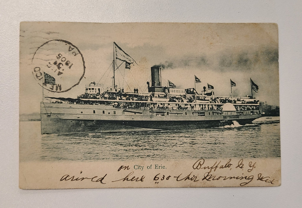 An original postcard depicting the ship City Of Erie. Dated August 2nd, 1905.