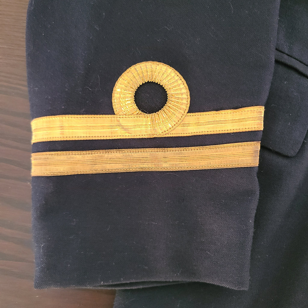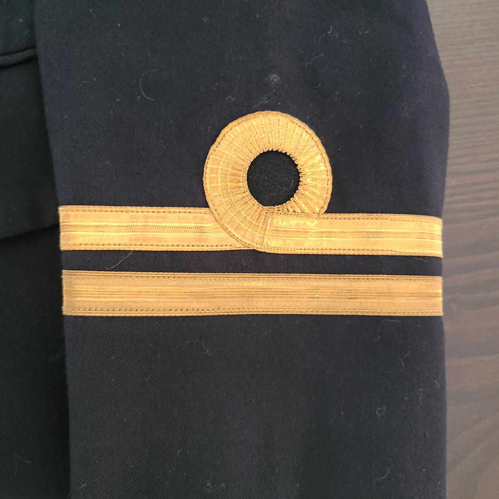 Cunard/Royal Navy Officer uniform Jacket with regiment buttons attributed to the late Cunard Engineer Dennis V. Gallagher.