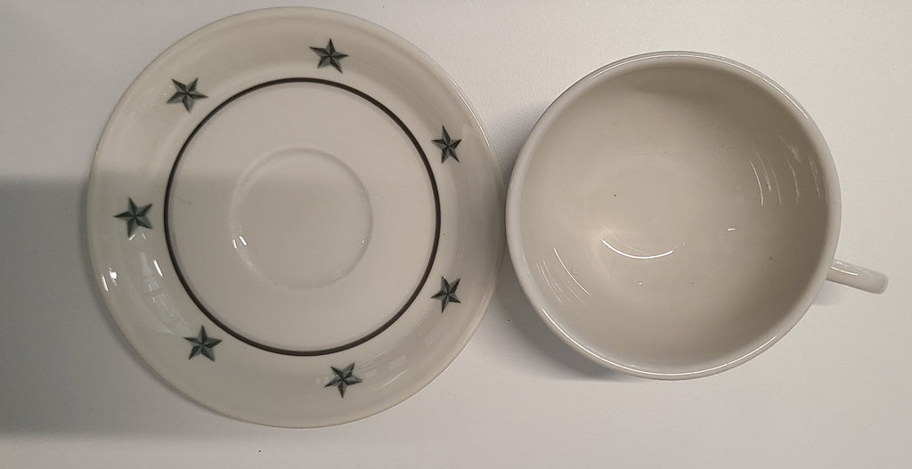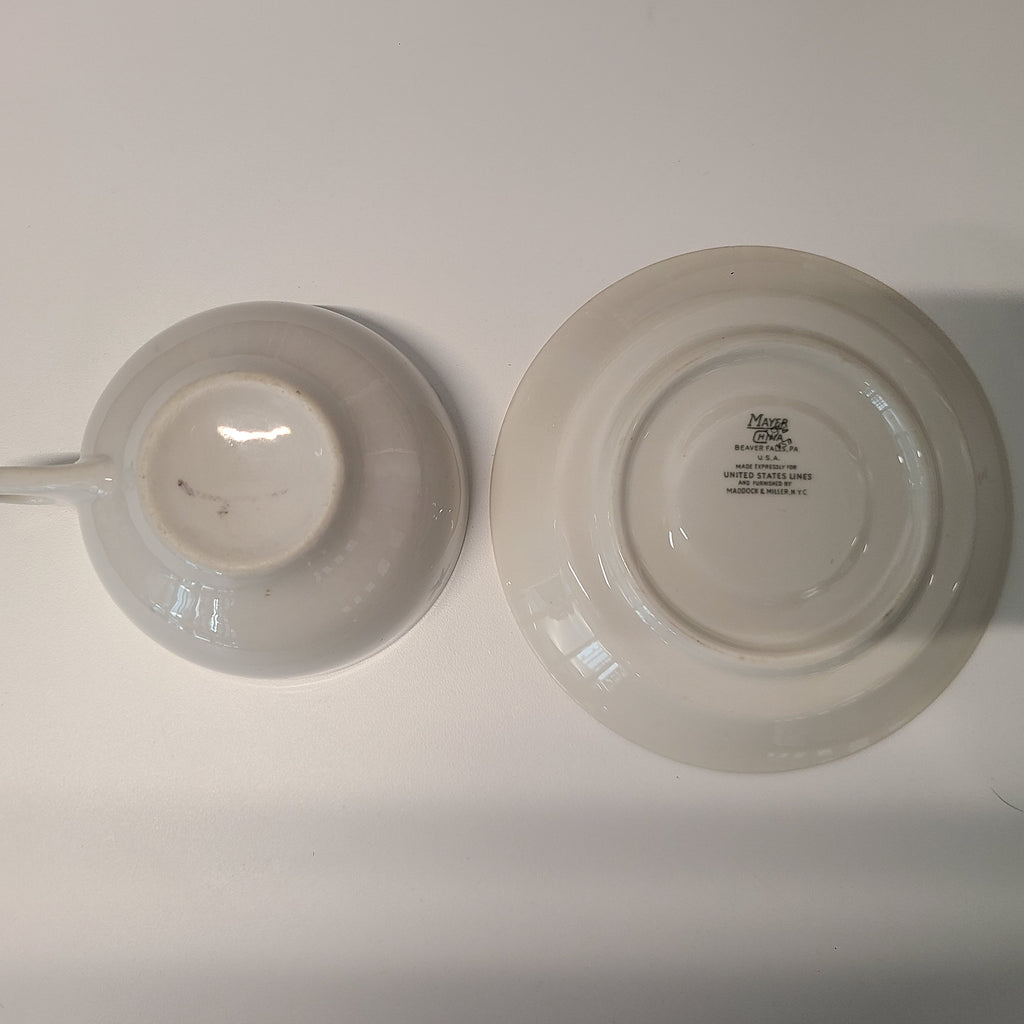 A great example of a cup & saucer set that would have been used onboard United States Lines ships.